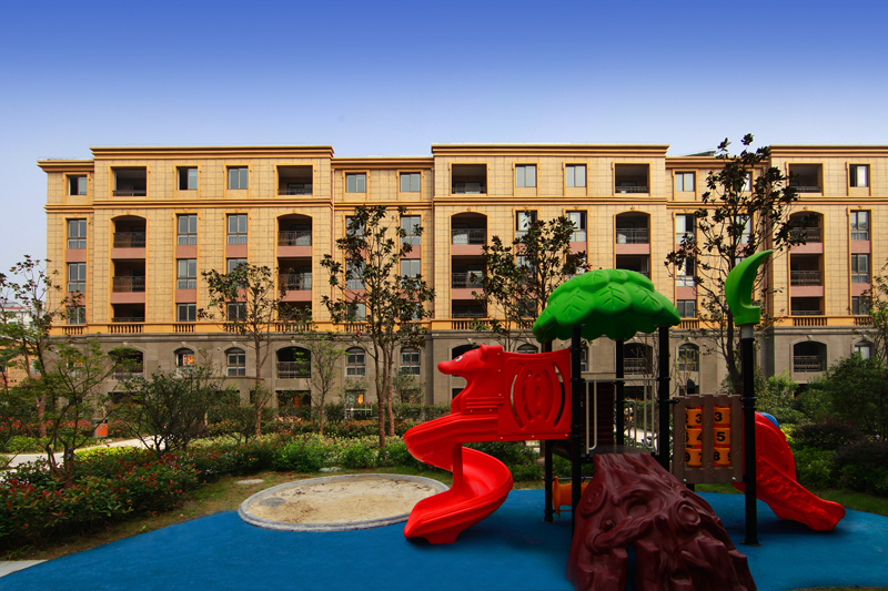 小區(qū)內設置兩條景觀軸線,使內部景觀錯落有致,園林設計中西合璧,既強調軸線對稱,肌理、軸線鮮明,有序地布置水景、修剪整齊的植物等,形成強烈的園林序列感,與法式建筑相得益彰,映襯宅邸的尊貴。充分利用小區(qū)與新城河路之間內高外低的一米高差,道路的設置依地勢起伏,景觀層次豐富多彩。