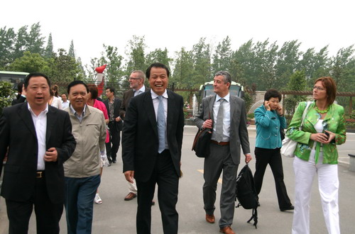 2010年5月16日下午,來(lái)自比利時(shí)王國(guó)林堡省省長(zhǎng)哈曼任德斯、布瑞市市長(zhǎng)雅克嘉布里埃爾一行的30多名友人在參加完世博會(huì)比利時(shí)館開(kāi)館儀式以后,即來(lái)到了風(fēng)景秀麗令西方人為之魂?duì)繅?mèng)縈的東方古城 揚(yáng)州。他們?cè)谟斡[了古城的景點(diǎn)后,在董事長(zhǎng)包廣林熱情地陪同下,參觀了陽(yáng)光美第和豪第坊??腿藗?cè)诼?tīng)了銷(xiāo)售人員對(duì)樓盤(pán)的介紹后,對(duì)我公司在樓盤(pán)建設(shè)中引入低碳、環(huán)保的理念表示非常贊許。隨行的建筑師安德魯斯帕斯先生說(shuō),這樣的理念在我們歐洲也是先進(jìn)的。安德魯斯帕斯先生還對(duì)具有東方神韻的豪第坊大加贊賞,他說(shuō)在這里讓我穿越時(shí)空看到了我夢(mèng)中的揚(yáng)州。