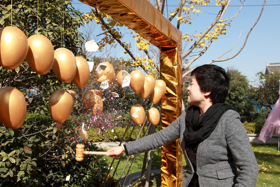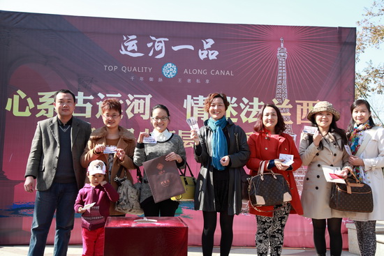 2013年11月17日上午,運(yùn)河一品售樓中心舉辦了心系古運(yùn)河,情迷法蘭西;開(kāi)盤(pán)預(yù)熱活動(dòng),邀請(qǐng)了前期預(yù)約的客戶及親友前來(lái)參與,活動(dòng)匯集了購(gòu)房砸金蛋;、親友助力大轉(zhuǎn)盤(pán);、DIY花藝;、精彩表演;、精美茶歇;等多彩項(xiàng)目,客戶參與度高,互動(dòng)性強(qiáng),客戶在愉快的氛圍中得到了不同幅度的購(gòu)房補(bǔ)貼,喜滿客電影票和香格里拉自助餐券,場(chǎng)面十分火爆。