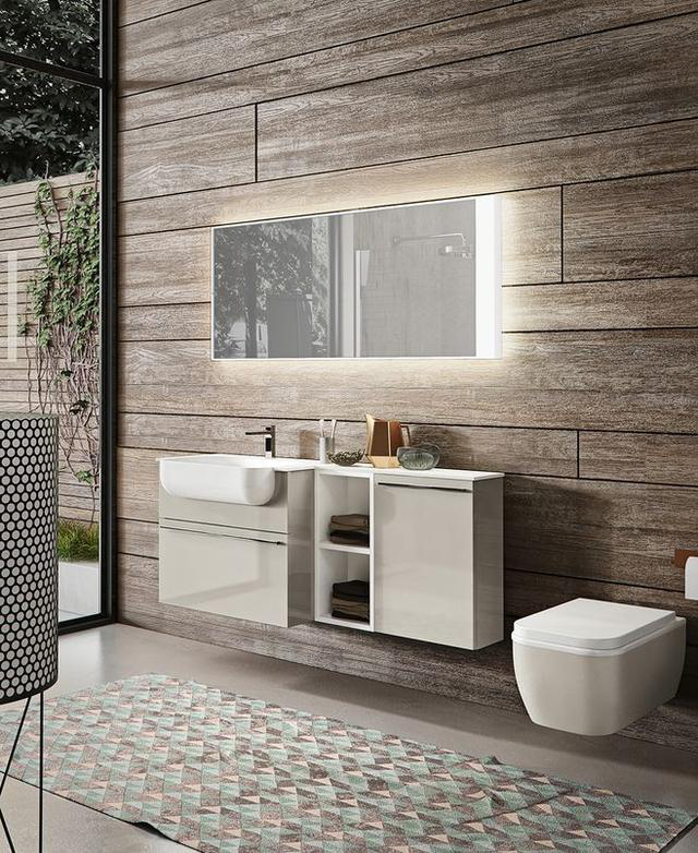 對于空間有限的小戶型衛(wèi)生間,與其選擇傳統(tǒng)的寬面的柜子,不妨拉高柜子的高度,進(jìn)行扁平化處理,可以選擇將開放式收納格與柜子相組合,滿足更多的收納與使用需求。