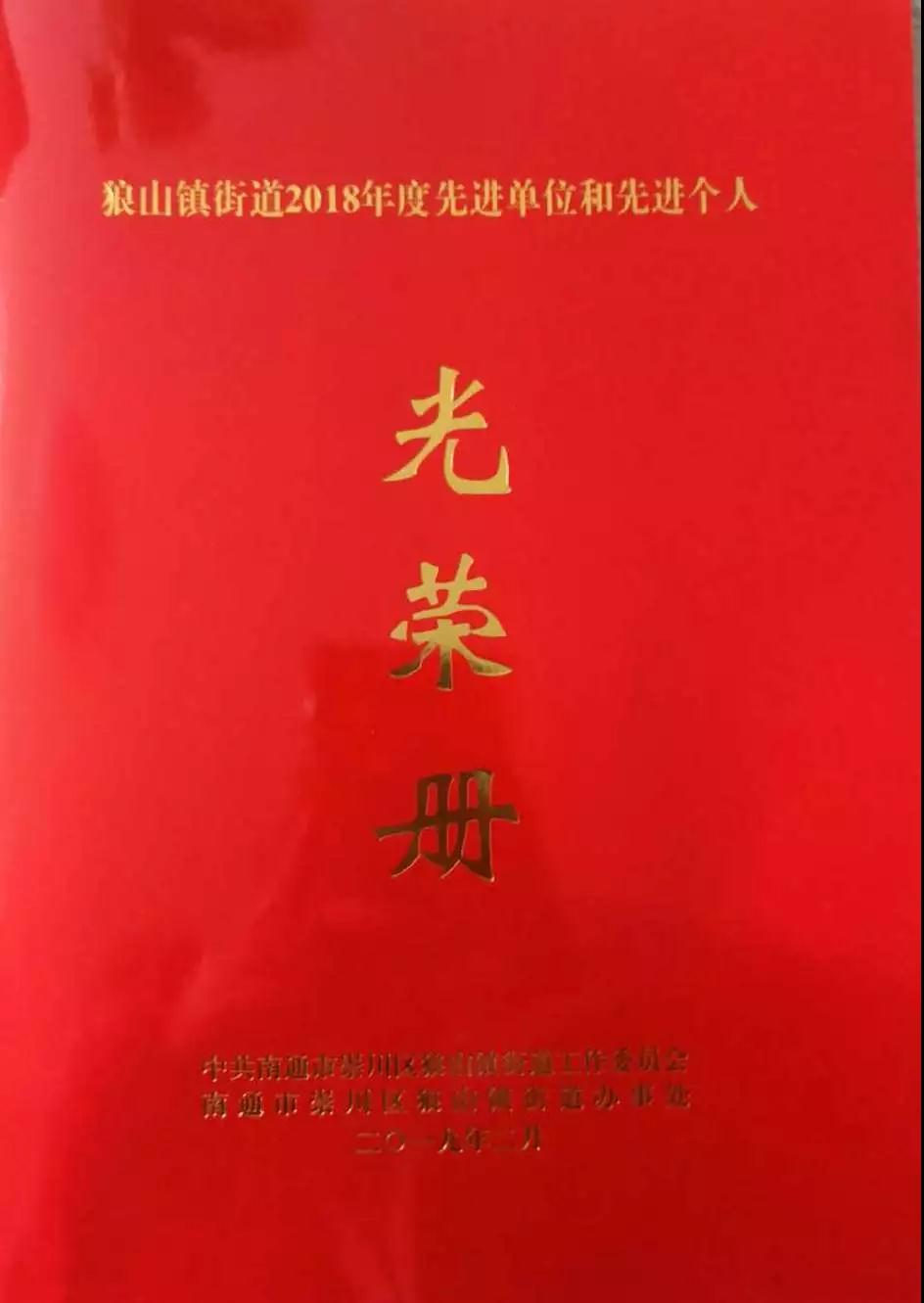 恭賀我司榮獲狼山鎮(zhèn)街道2018年度“結對共建先進單位”